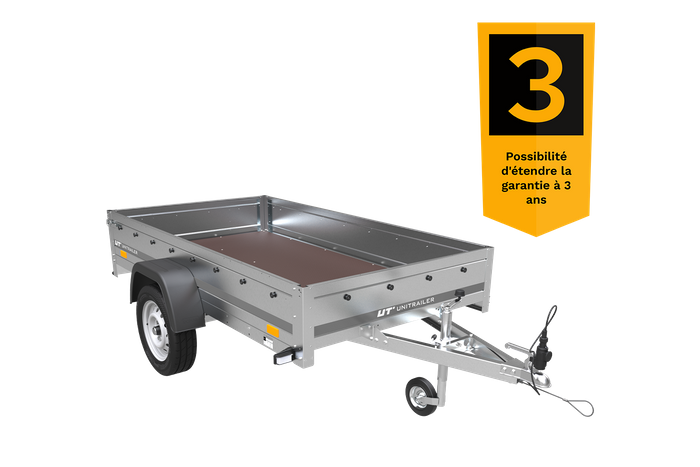 Remorque voiture simple essieu Unitrailer Garden Trailer 230 x 125 cm avec timon fixe 500/750 kg